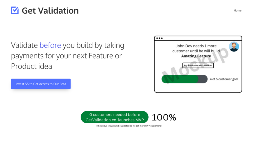 Beta Access to GetValidation.co$5$5https://schema.org/InStockusdTimothy BramlettTimothy BramlettInvesting $5 will get you beta access to GetValidation.co when we launch! I want this!16 salesBeta Beta Access to GetValidation.coAdd to wishlist New wishlistShareShare on XShare on Facebook Copy linkCopy product URL